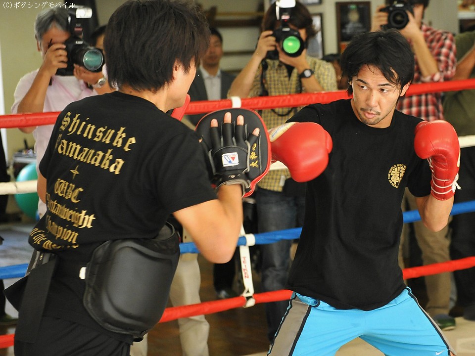 11月10日に5度目の防衛戦を迎えるWBC世界バンタム級王者の山中慎介が1日、都内の帝拳ジムで練習を公開した。