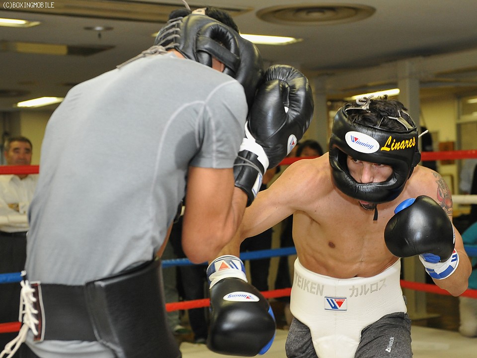 こうしたなかリナレスは「最初は驚いたけれど、もう大丈夫。(10日は)相手が誰でもKOするよ」と陽気に笑った。12月7日に試合を控えるジムメートの外園隼人との2ラウンドのスパーリングでは、上体を柔軟につかいながら随所で速いワンツーを繰り出し、ボディにもパンチを散らした。巧みなブロックや低いダッキングなど防御面の確認作業も怠らず、折々でフットワークも駆使するなど“天才”の片鱗を披露した。手合わせした外園は「相変わらずパンチの回転が速いうえ、一発一発のパンチも強くなっている」と舌を巻いた。