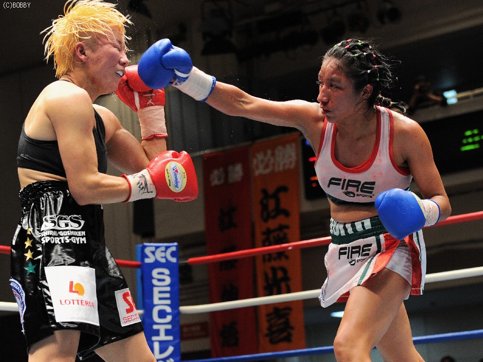 挑戦者のロドリゲスは昨年11月、WBA女子世界Sフライ級王者、山口直子(白井・具志堅)と対戦。メキシカン独特のリズムからくりだす、左右フック、右ストレート、アッパーを武器に手数の多い接近戦で山口を苦しめた。