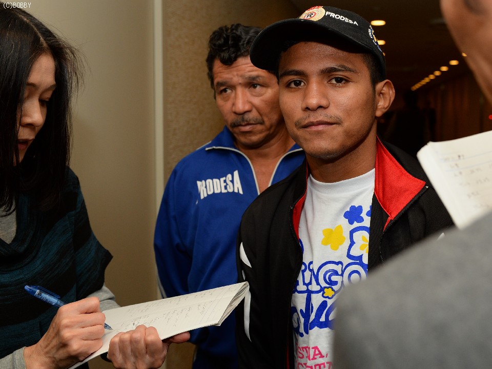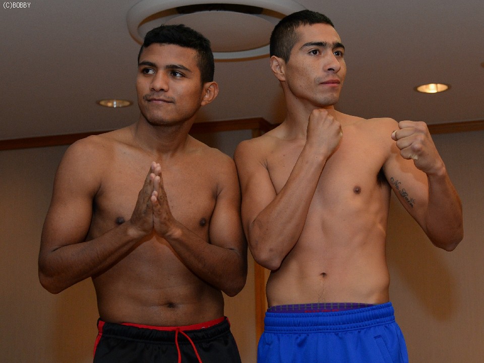 113ポンド契約10回戦に出場するWBA世界ライトフライ級スーパー王者ローマン・ゴンザレス(ニカラグア/帝拳)とIBF世界フライ級12位のオスカル・ブランケット(メキシコ)は、ともにリミット51.2kgでクリア。計量後は健闘を称えあい握手を交わした。