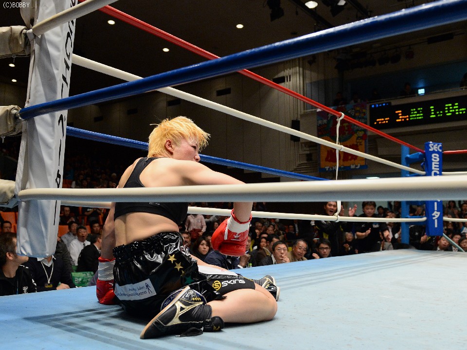 ダウンに呆然とする山口