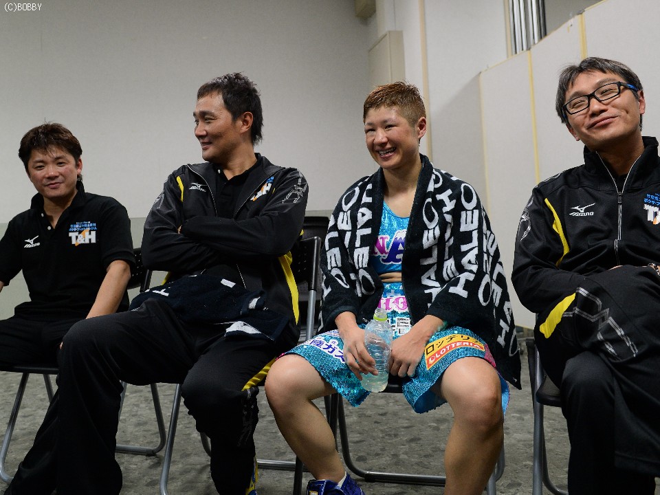 一方、敗れた山口は両目の周辺に腫れをつくりながらも会見に応じた。「完敗です。先にパンチをもらうことが多く、リズムがつかめませんでした。振りの大きいパンチだったけれど、(藤岡に)勇気があったので押されました」と、素直に敗北を受け入れた。相手については「パワーもあり気持ちも強い選手」と賛辞を送った。気丈に会見に応じていた山口だが、「調子がよかっただけに残念。ただ、女子ボクシングとしてはいい試合だったと思います」と話し、そこで初めて涙をみせた。使命感を抱えての試合だったことがうかがえる。今後に関しては「まだ力を出し切れていない」と話したことから、現役続行とみてよさそうだ。具志堅用高会長も「チャンスはもう一度あるよ。藤岡と暫定王者の勝者と対戦させたい」と愛弟子のチャンスづくりに奔走することを約束していた。18戦15勝(13KO)3敗。