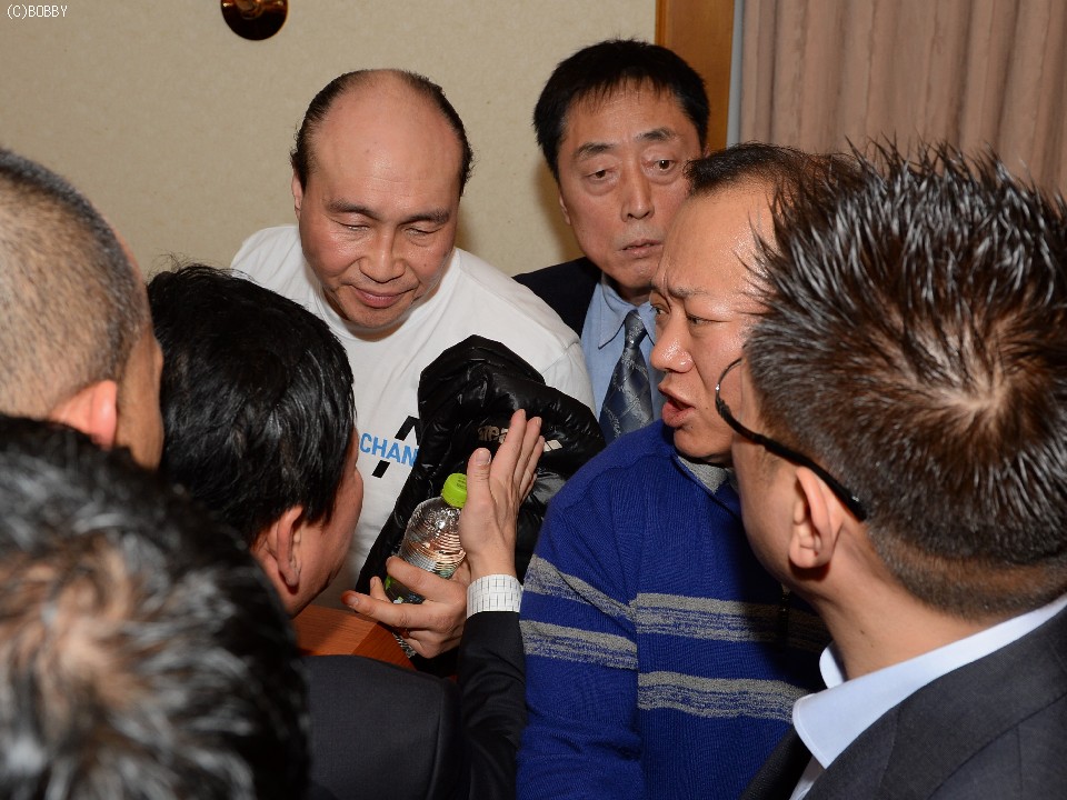 調印式は日本と同じようにグローブチェック、調印へと進んだが、グローブチェックの最中に部外者が入り込んだり、翌日の計量に使用する秤の契約をめぐってソン側の関係者と通訳がひと悶着あったりと亀田側は早くもアウェーの洗礼をうけた。なお明日の計量は、当初12時の予定が14時もしくは16時で調整に入っている。
