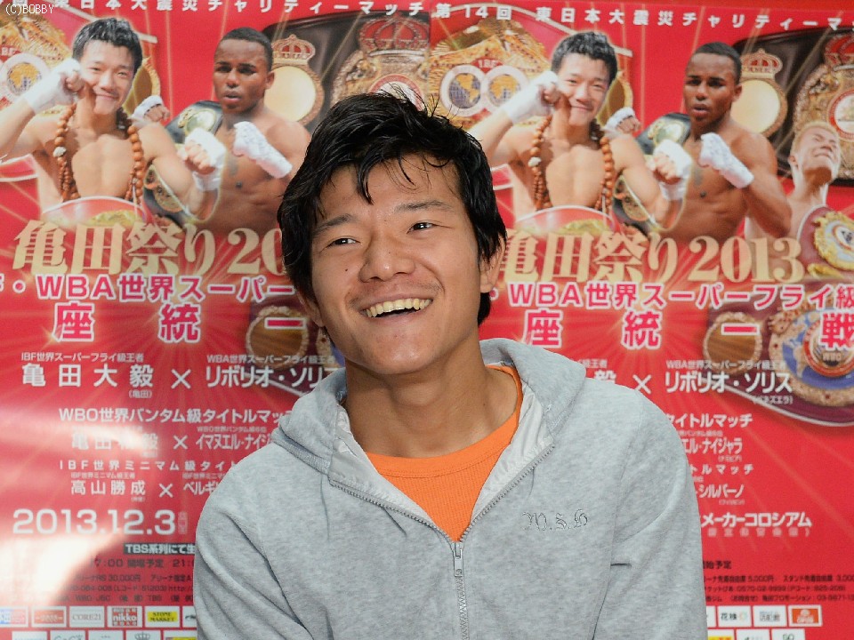 初防衛戦が他団体王者との世界王座統一戦だが「なんにも意識はしてない」と、二階級制覇したチャンピオンの貫禄を見せた。「今回は仏の右がでるよ」と、話す大毅の右に注目。