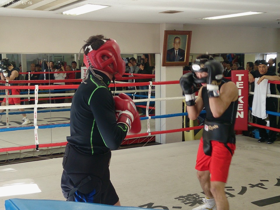プロで戦うスタミナとペース配分の強化に集中したラスベガス合宿から帰国し、最終調整に入った村田は、おとといのスパーリングで軸がブレて崩れていたことを指摘され、この日のウェズ・コッパー(豪)との4ラウンドのスパーリングでその点を注意しながら行った。その後にイスマエル・サラス・トレーナーとのミット打ちなどで汗を流した。