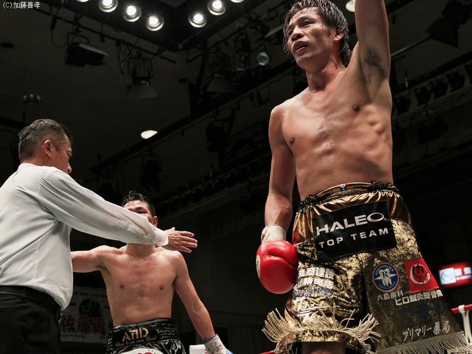 気迫を全面に出した十二村が手数で押すラウンドも多かったが、全般を通じてストレートは湯場のバックステップにより単発に終り、2発、3発目までは続かず。終盤は手数の乏しい湯場が左ストレート、左アッパーの有効打で印象付け、前戦に続き僅差の判定勝ちを収めた。