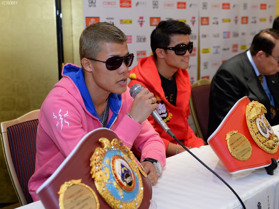 海外メディアとしてニューヨークに本部があるネットメディアNOTI FIGHTのパナマ人カメラマンからチャンピオンとして初めて日本で戦うことを問われ流暢なスペイン語で答えた和毅は