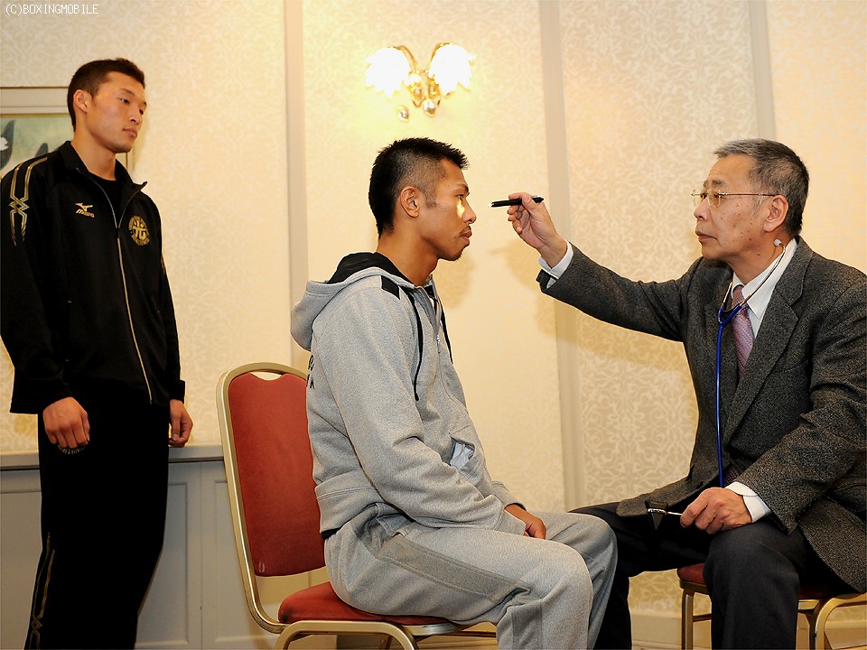 大晦日に大田区総合体育館で開催されるスーパーフェザー級ダブル世界戦の予備検診が28日、都内のホテルで行われた。最初に検診を受けたのは、日本人対決で注目を集めるWBA世界王者の内山高志(ワタナベ)と挑戦者で日本王者の金子大樹(横浜光)。