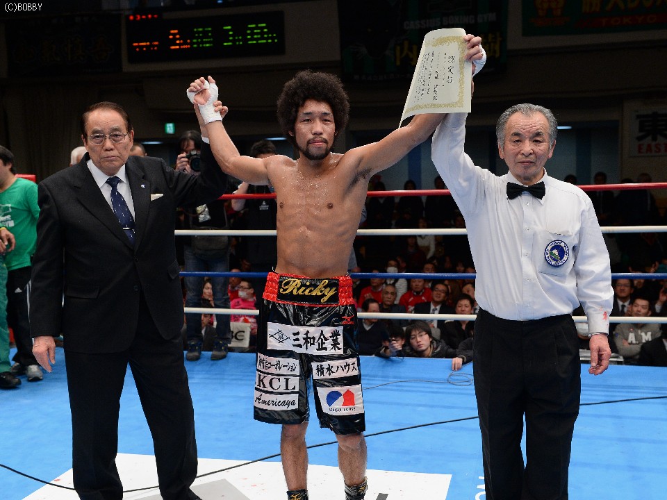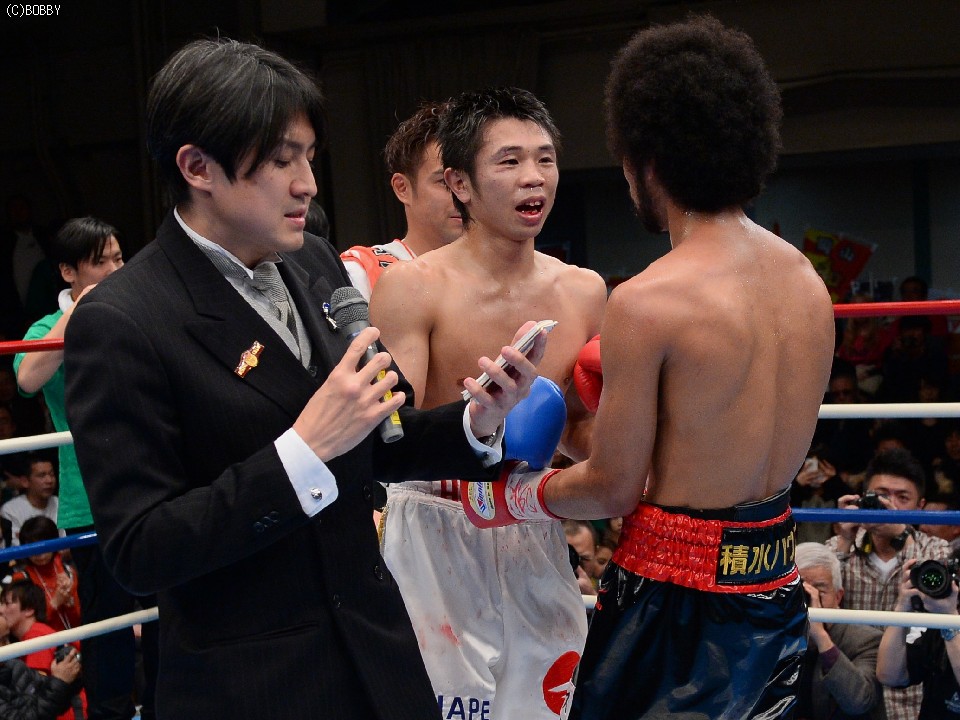 この結果、8R終了時TKO、勝者内藤が告げられ、プロ9戦目、無敗(5KO)のまま日本スーパーフェザー級新チャンピオンに輝いた。父でありジムの会長でもある元日本&東洋ミドル級王者、カシアス内藤氏にまずは日本チャンピオンとして並んだ内藤律樹は、リング上で「詰めの課題はあるがホッとしている」と第一声。親子2代のチャンピオンについては「親父は東洋も獲っているので、日本王座ではまだまだ。世界を獲って越えたい」と父越えを宣言した。父・カシアス氏も「チャンピオンを作るという夢が叶った。それが息子で嬉しい」と、来年で設立10年目を迎えるジム初のベルトに喜んだ。