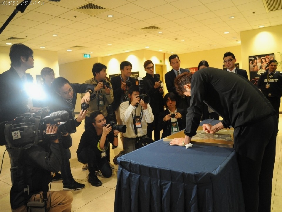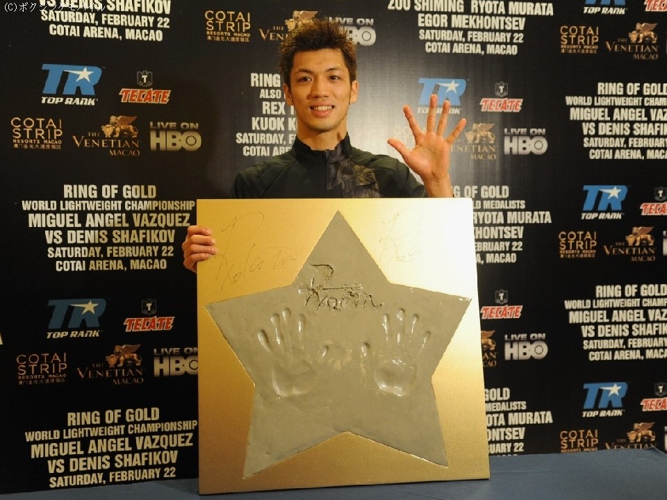 22日、プロデビュー3戦目をマカオで迎えた村田諒太(三迫)が、試合後会見を開いた。