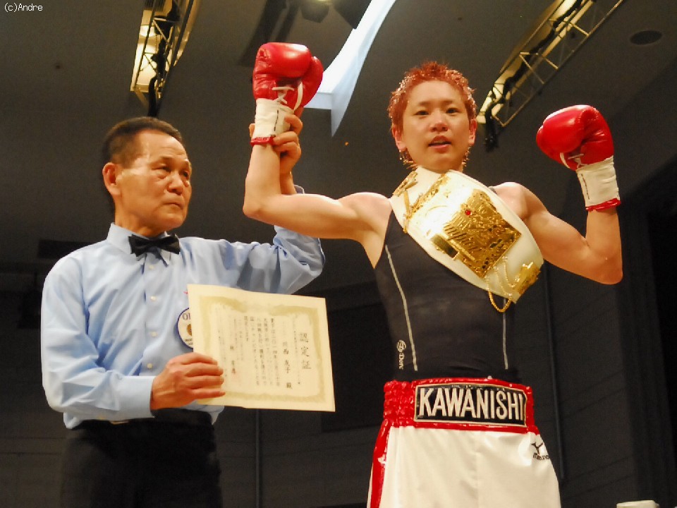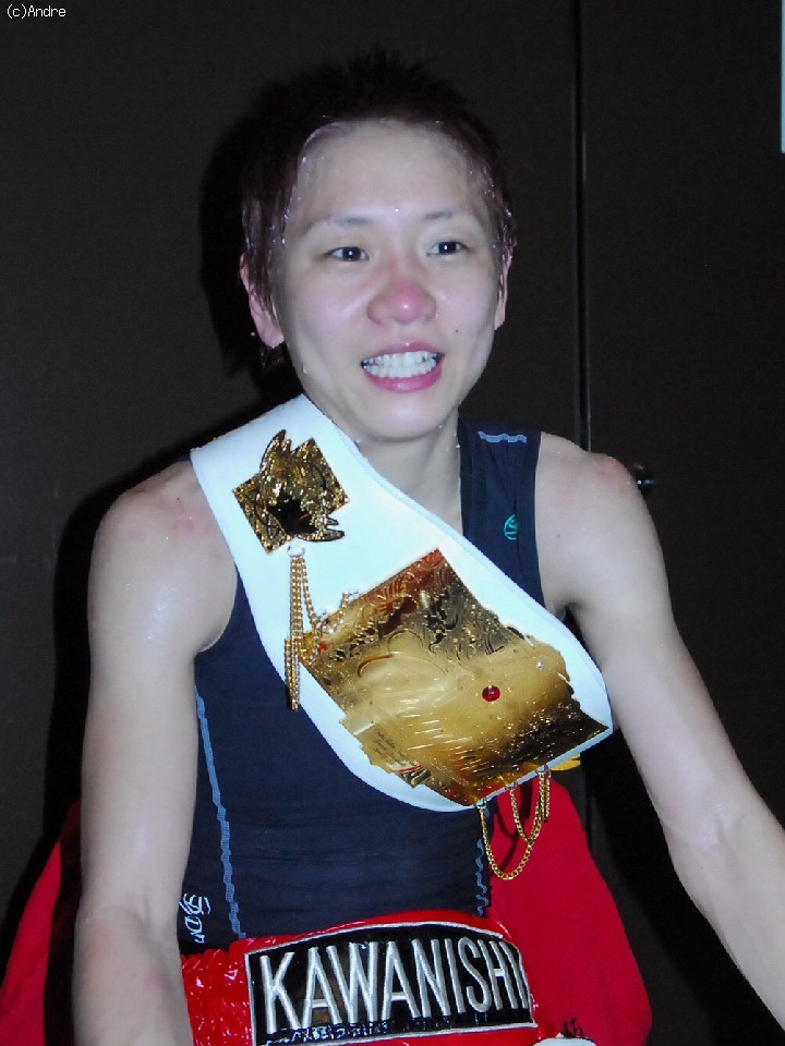 試合開始早々、体格差とスピードの違いは歴然だった。リーチ、身長、スピード、全てにおいて優位に立つ王者・川西だが、ジョプジャンは体も小さく的も絞りにくかったのか、的確なヒットが出来ず判定までもつれた。フルマークの完全勝利という形になったが課題の残る試合結果となった。