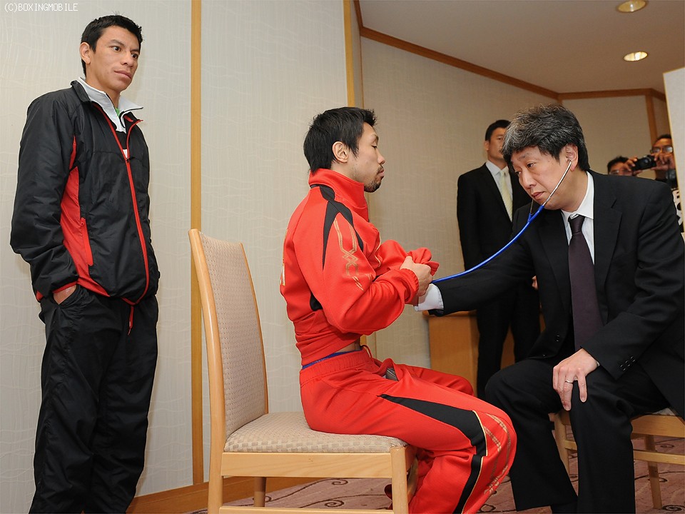 6日(日)、大田区総合体育館で開催されるダブル世界戦のひとつ、WBC世界フライ級タイトルマッチに出場する王者の八重樫東(31=大橋)と挑戦者の同級8位オディロン・サレタ(28=メキシコ)の予備検診が3日に都内で行われ、終了後に会見を開いた。