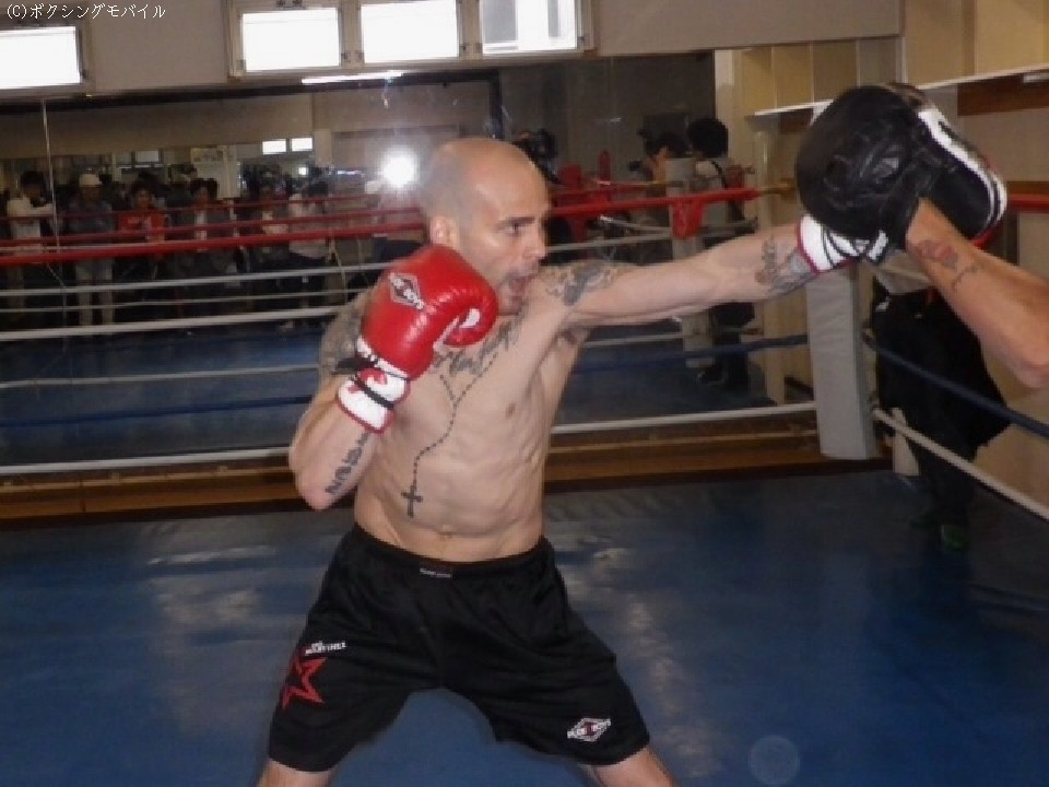 練習は母国で十分仕上がっているという理由で1Rのシャドーと1Rのミット打ちのみで早々とジムを引き上げたマルチネス陣営だが、長旅の疲れも見せずに皆笑顔で6日後の大一番に向けて着々と準備を整えている。決戦は、いよいよ4月23日、大阪城ホールにて。放送は日テレ。