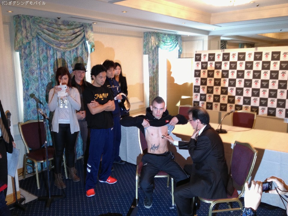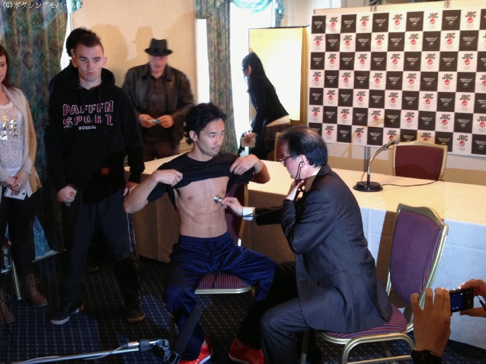 関西が誇る滋賀県出身の世界王者が初めて凱旋防衛戦に臨むとあって、この日の予備検診には多くのマスコミ報道関係者が集まった。