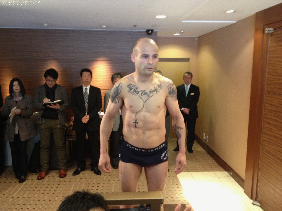 初体験の当日計量を終えた長谷川穂積(真正)は「条件は一緒ですから。あとはやるだけです」と話すと神戸市内の自宅へ戻って今夜の試合に備えるという。