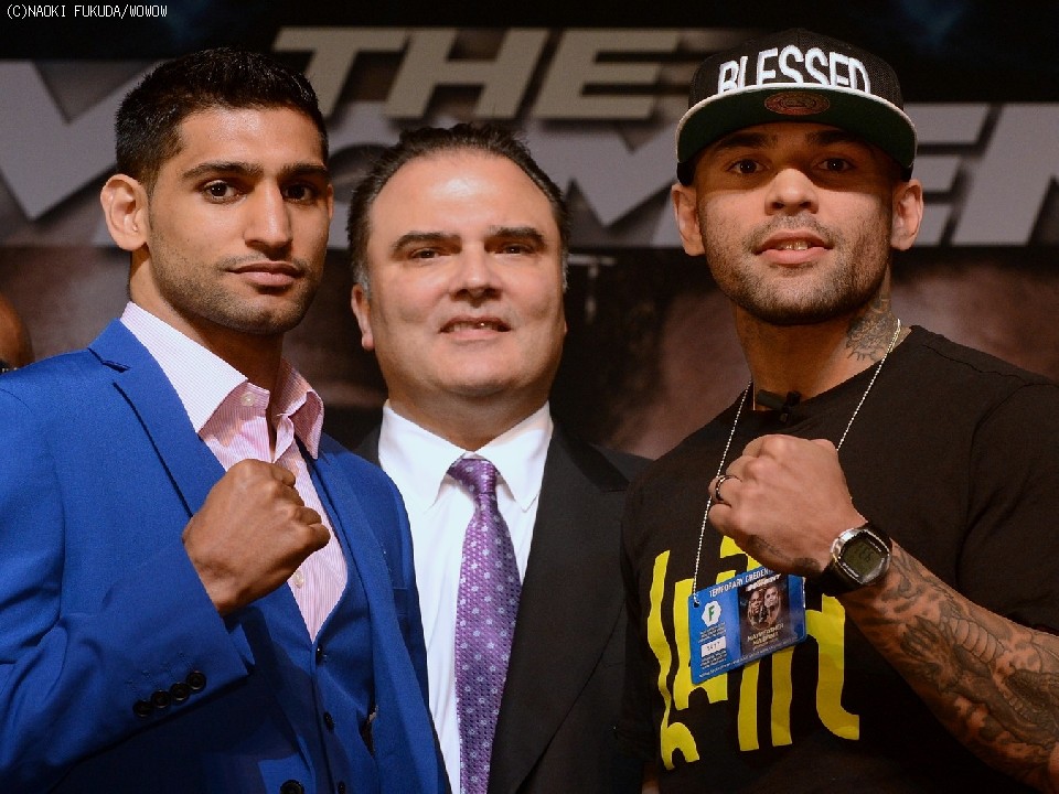 前日にはメインカードのメイウェザーとマイダナが会見に臨んだが、この日もそれに勝るとも劣らぬ数のメディアが集まった。前座もそれほどに注目されているということの証左といえよう。セミファイナルのWBCインターナショナル・ウェルター級戦、およびWBC同級シルバー王座決定戦に出場するアミール・カーン(英)は、これが約1年ぶりの実戦となる。「試合は1年ぶりだが、この8ヵ月間はジムでトレーニングを積んできた。食べ過ぎたわけではなく、階級を上げるためのトレーニングをしてきたんだ」と言葉に力を込めた。相手のルイス・コラーゾ(米)は元王者で、この1月にはビクター・オルティス(米)を右フック一発で屠っている。「ウェルター級へようこそ。ゴングが鳴ったら俺のことしか目に入らなくなるぞ」と、メイウェザーへの挑戦を計画しているカーンに警告の言葉を贈った。