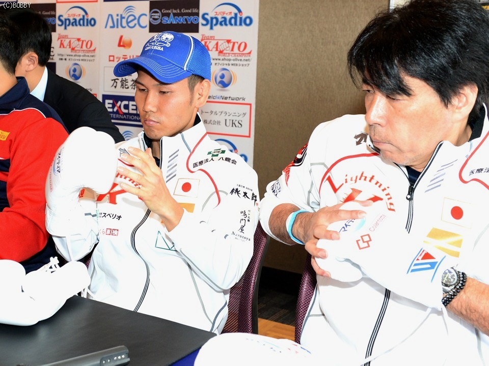 「四団体制覇に向けて動き始めたので、この試合をクリアして先に進みたい」と語ったチャンピオン高山は「プライドをかけた日本人対決。試合が楽しみ」と明日の防衛戦に臨む。高山は白いグローブでリングに上がる。両者ともに日本製ウィニング社8オンスのグローブを使用する。