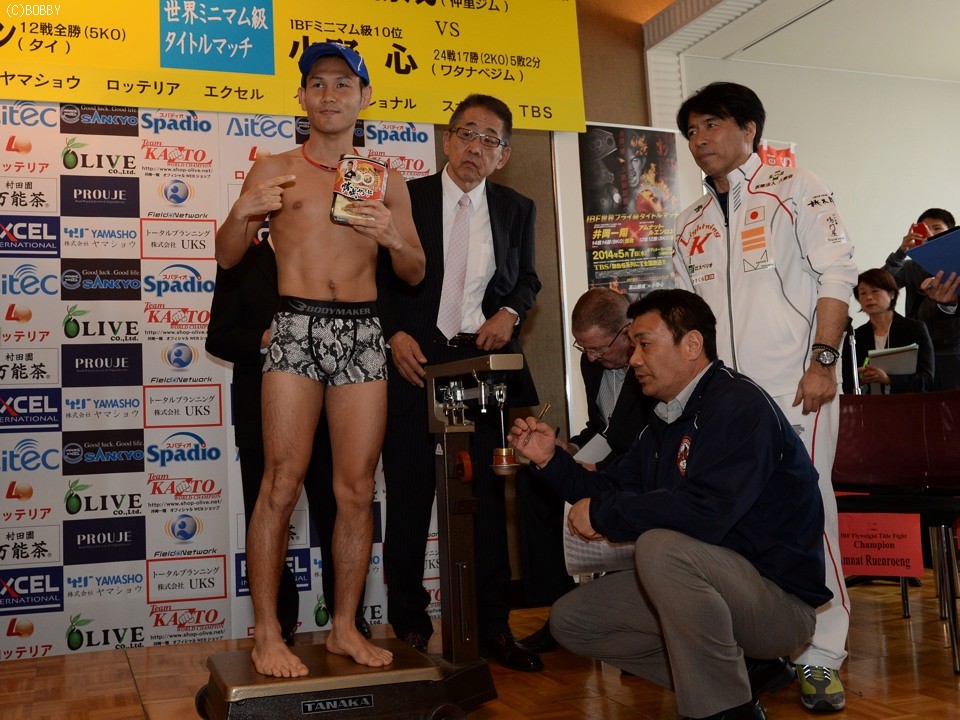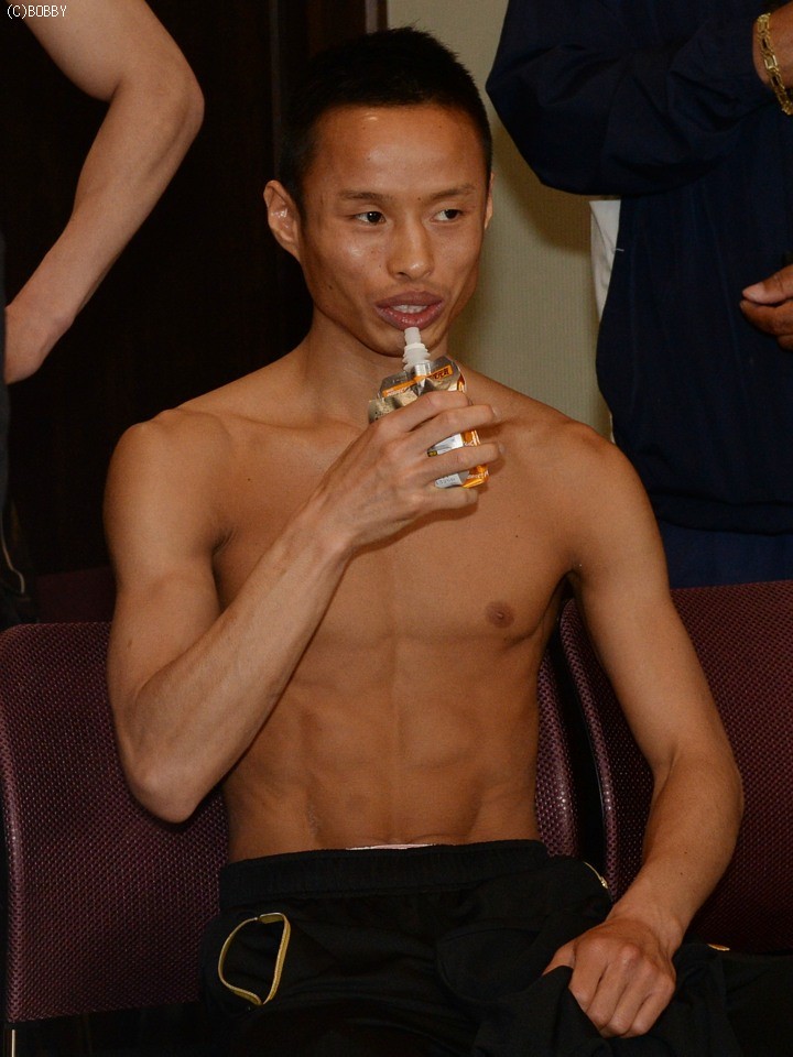 両選手ともに一回でクリアした前日計量。IBFルールが採用される明日の世界戦は、午前中に当日計量も行われる。当日計量は、4.54kgのリバウンド体重リミットがある。