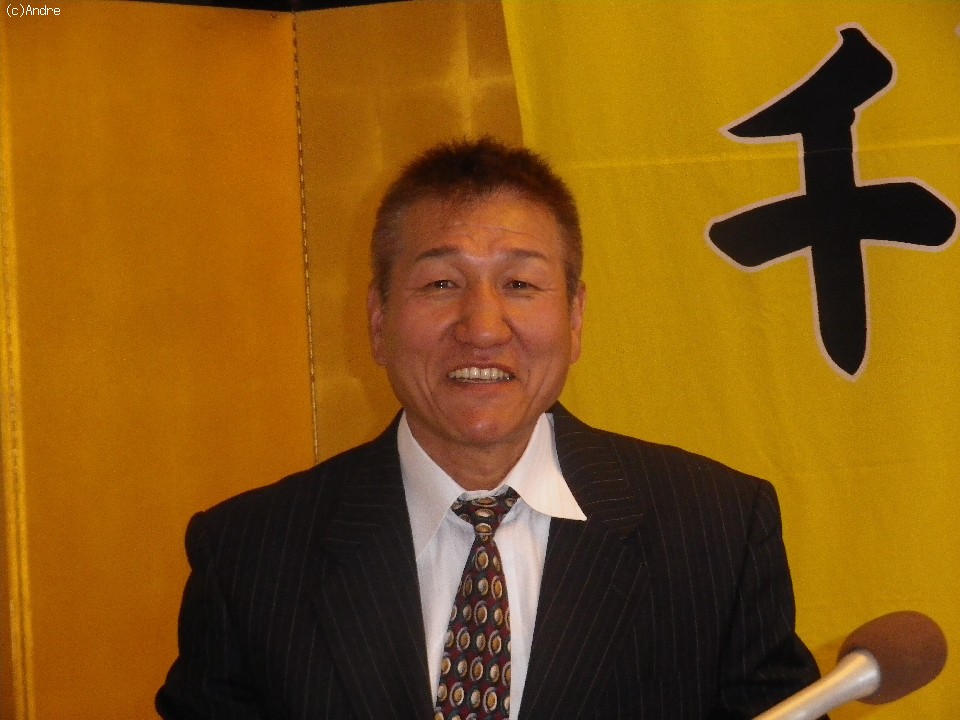 会見に同席した千里馬啓コ会長は試合が決まった感想をきかれると「必ず取ります」と短い言葉に力を込めた。会場がホテルになったことをきかれると「30年前にデトロイトでみたボクシング会場がホテルで感動したんです。念願のホテルでの試合やからみんな正装してきてください」と記者の笑いを誘った。