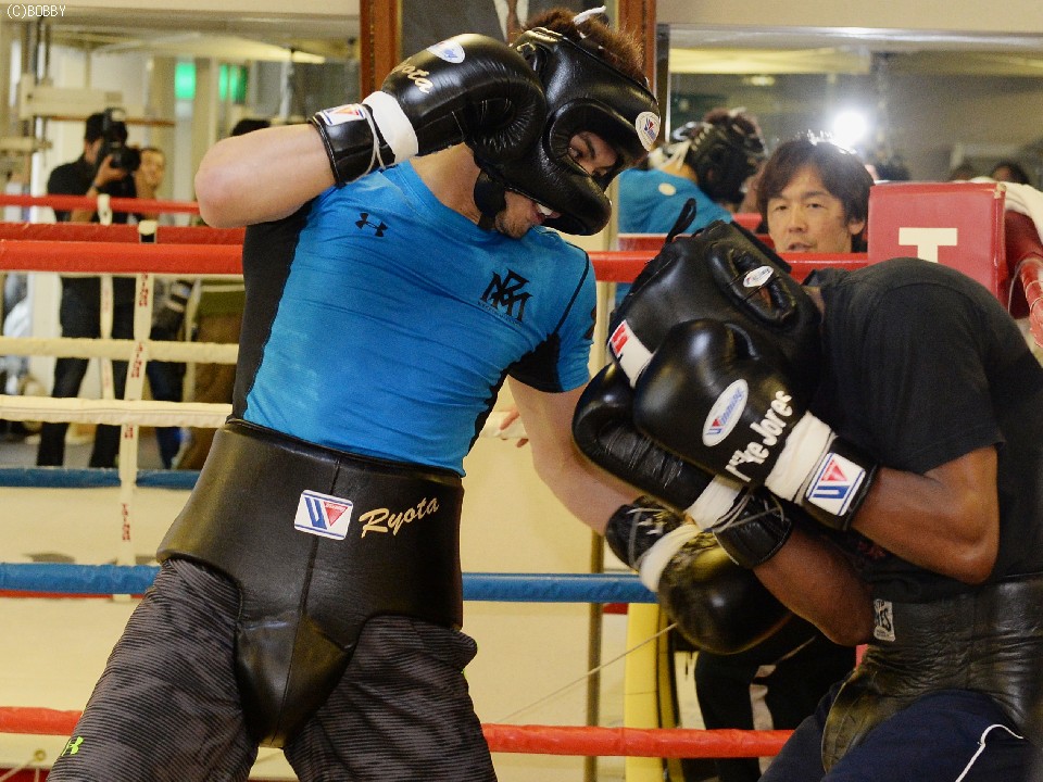 会見後に行ったジョーンズとの3ラウンドのスパーリングでは、ガードを固めながら相手との距離を詰め、ワンツーから左のボディブローを繰り出すなど練習の成果の一端を披露した。葛西裕一トレーナーからは「左がいいよ」「ナイス、ボディ」などと声が飛んでいた。このあと村田はジムで調整を続け、19日に試合地の京都に移動することになっている。