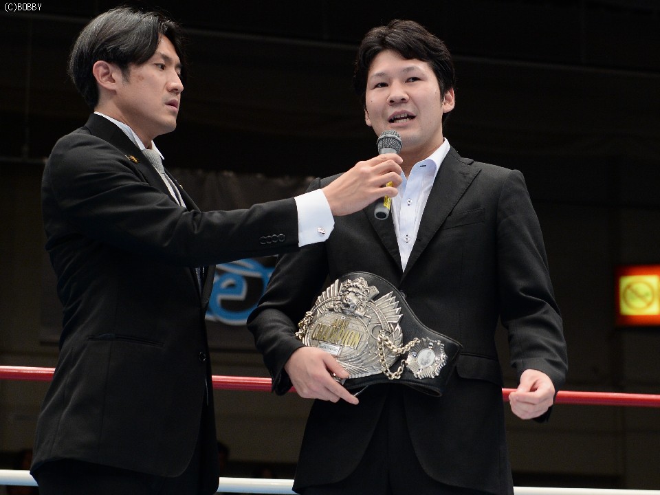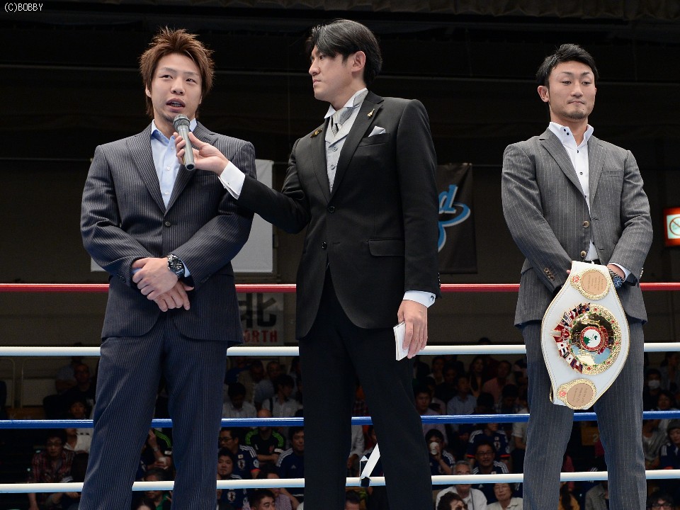 この新旧王者対決は、9日に後楽園ホールで行われた日本ダブルタイトルマッチで発表されたもので、両者は揃ってリングに上がり、試合に向けて意気込みを語った。