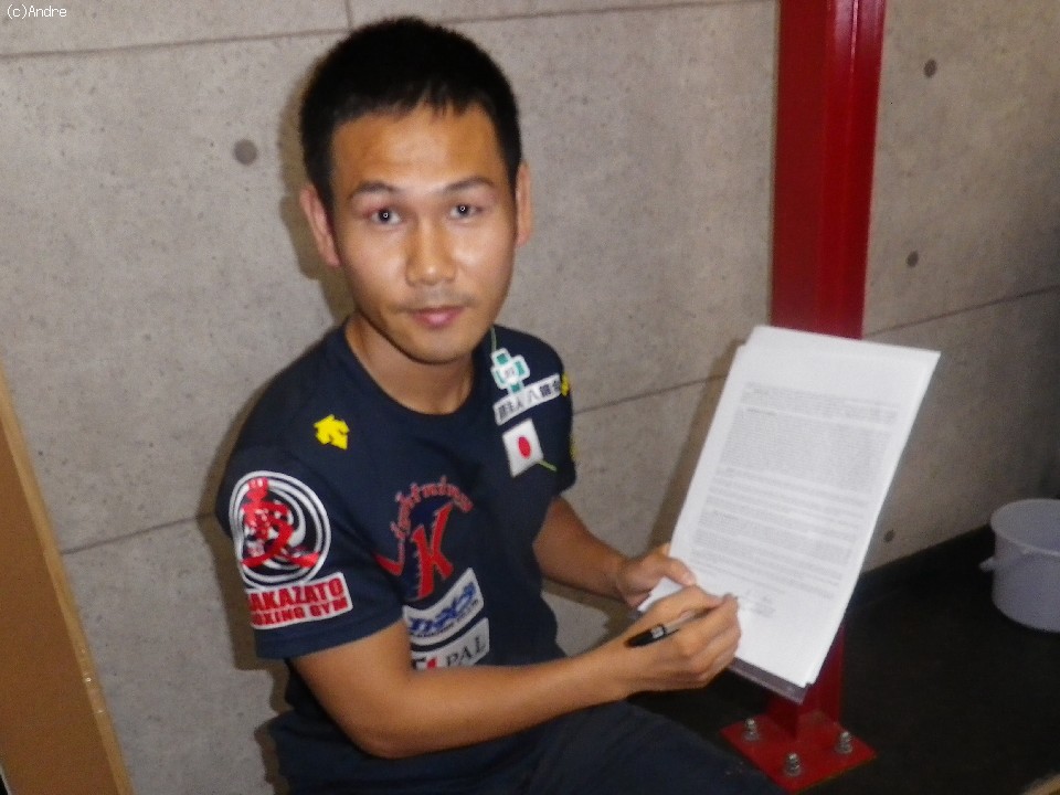 練習前に会見を開いた高山は「今、次戦の試合のサインをしました。次戦は8月9日(日本時間10日)メキシコのモントレーでWBO世界ミニマム級王者のフランシスコ・ロドリゲスJr.(20=メキシコ:16戦14勝(10KO)2敗)と王座統一戦を行います」とサインしたての書類を報道陣に公開した。