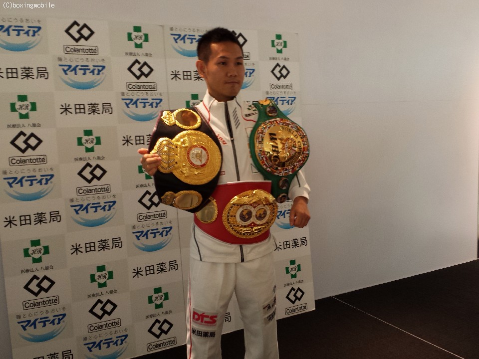 中出トレーナーは「ようやくこの試合を組むことができた。4団体を制覇することでかつての世界チャンピオンと肩を並べることができる」と意気込みを語った。  先月に検査で脳動脈瘤が見つかった中出トレーナーは、「ハードスケジュールの中で特に問題はなかった。7月に手術を行い、開頭手術ではないのですぐに動くことができると思う。病院のベッドの上で色々と作戦を考えようと思っています」と笑顔で話した。