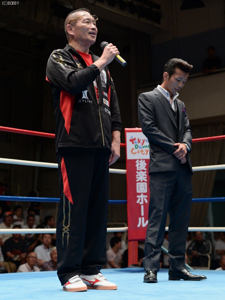 24日、後楽園ホールで行われた古口会長の古巣でもある協栄ジム主催の「ガッツ・ファイティング」のリングに、ジムのエースで東洋太平洋スーパーバンタム級王者の和氣慎吾(26)と上がった古口会長から発表された。