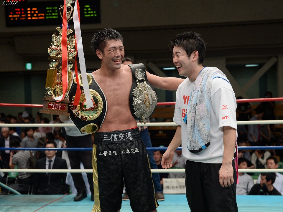 会見に同席した渡辺均会長は「まだまだ身体は動くので村田諒太(三迫)選手との距離を縮めさせたい。まずは防衛を重ねること。ベルトに関しても今後考えていく」と抱負を語った。