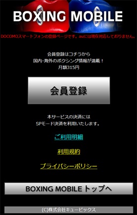 ※ここで「ボクシングモバイル」が見つからない場合は登録が完了していないと思われますので、手順3.の画面で「会員登録」を選択して登録を行なってください。