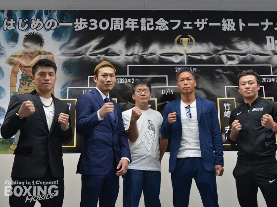 連載30周年を迎えた人気ボクシング漫画「はじめの一歩」を冠したA級選手によるフェザー級トーナメントは、日本同級6位の渡部大介(28=ワタナベ)、日本同級7位の溜田剛士(26=大橋)、OPBF東洋太平洋同級13位の竹嶋宏心(23=松田)、13年度東日本同級新人王の草野慎悟(30=三迫)のほか、WBOグレーターチャイナ同級王者マ・シャン(23=中国)、韓国KMB同級王者イ・ジェウ(26=韓国)、そして元WBOアジアパシフィック同級王者リチャード・プミクピック(29=比)の海外3選手が参戦。