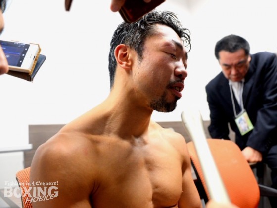 「まず、今回の試合を実現してくださった皆さまに感謝しています。本当にありがとうございます。今日は本当にいい試合でした。八重樫選手は元世界チャンピオンで素晴らしい選手。王者に返り咲きたいという強い意志を感じたが、残念ながら彼は勝てなかった。ボディへの攻撃は受けたがダメージはなかった。12回戦い抜くつもりでいたが、7回にかなりダメージを与えられたと思う。年齢は重ねているが、身体も動くし、まだ私はチャンピオンなので、いつまでできるかわからないが、これからもボクシングを続けていきたい」