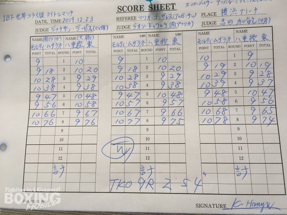 激闘王の執念は実らなかった。約2年半ぶりの王座奪還を目指す八重樫が、前に出てくるムザラネを距離で外すと左ボディを好打。4回になると一転、激しいパンチの応酬でタフファイトを展開。八重樫は、接近戦でのボディブローを決めたがムザラネも一歩も引かなかった。しかし、7回にムザラネの重たい右ストレートで顔を弾かれると、8回にはボディに連打を浴びてふらつき苦しい状況。9回、懸命にパンチを繰り出した八重樫だったが、最後は力尽きてキャンバスに崩れ落ちた。