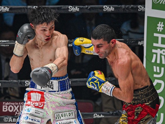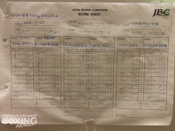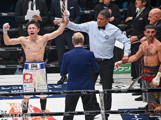 WBA(世界ボクシング協会)フライ級タイトルマッチ、王者のアルテム・ダラキアン(36=ウクライナ)対同級1位のユーリ阿久井政悟(28=倉敷守安)が23日(水)、エディオンアリーナ大阪(大阪府立体育会館・第1競技場)で開催された「Prime Video Presents Live Boxing 第6弾」で行われた。