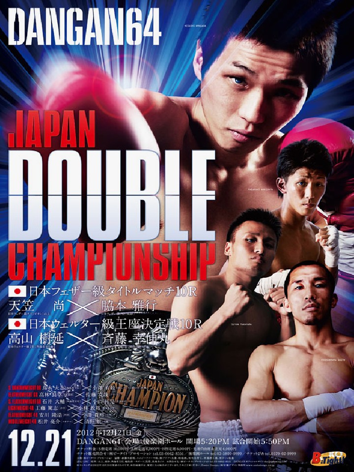 注目:"痩身の暗殺者"天笠のV3戦。細身の体躯には似つかわしくない殺傷力を持った右ストレートと左フックで、これまで幾人もの選手をキャンバスに沈めてきた。上野則之(RK蒲田)との初防衛戦ではアゴを打ち抜かれ、あわやといった場面もあったが、V2戦では渡邉卓也(青木)との長身対決を制し、ここまで判定ながら王座を守り抜いている。対するサウスポー脇本は、2年前に世界ランカー・チョラタン・ピリャピニョ(タイ)に敗れてからはここまで6戦負け無し。今年2月に後楽園ホールで行われた竹中良(三迫)戦では、試合運びも巧みに無敗の竹中から右アッパーでダウンを奪い完勝。"西の雄"脇本の存在を印象づけた。23歳と若く勢いにのる期待の大器が、長身王者にどう立ち向かうのか注目だ!