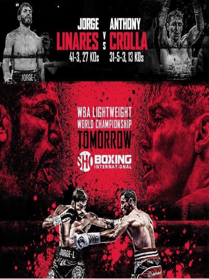両者は昨年9月、マンチェスター・アリーナで拳を交え、激戦のすえリナレスが3対0の判定勝ちを収め、ふたつの王座を手に入れた。接戦だったこともあり直後から再戦が計画され、このほど正式決定、マッチルーム・ボクシングのエディ・ハーン・プロモーターから4日に発表された。リナレスは44戦41勝(27KO)3敗、クロラは39戦31勝(13KO)5敗3分。オッズは3対2でリナレス有利と出ている。