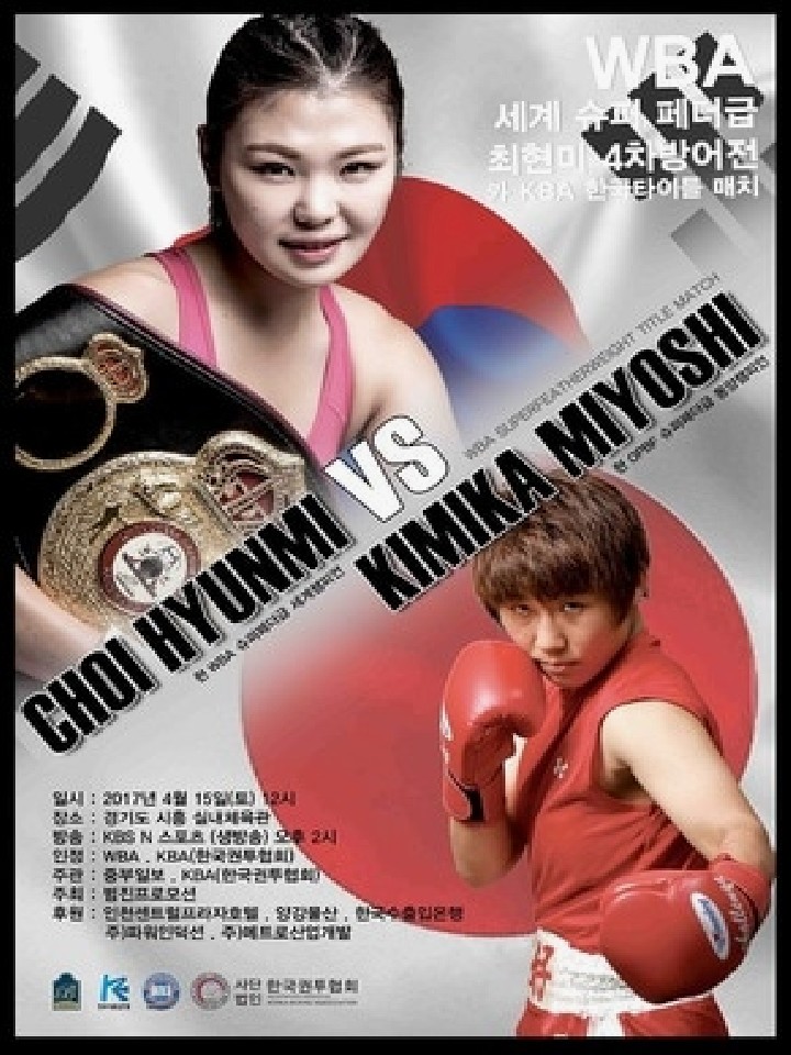 注目:王者のチェは、アマチュアを経てプロ入りした技巧派の右ボクサーファイター。08年のデビュー戦で空位のWBA女子世界フェザー級王座を獲得して話題になった。7度の防衛後に王座を返上し、13年8月に韓国で風神ライカとWBAスーパーフェザー級暫定王座を争い、判定勝ちで2階級制覇に成功。その後正規王座に昇格したチェは、15年5月のV2戦でOPBFスーパーフェザー級王者の水谷智佳(宮田)を退けると、昨年5月にはマイナー団体のWBFスーパーフェザー級王座を獲得し2冠王者となった。今回がWBA王座3度目の防衛戦。一方、キャリア10年目を迎える三好は、13年に東郷理代(アルファ)を破りOPBF女子バンタム級王座を獲得。世界挑戦失敗後、東郷と再戦し王座を奪われたが、昨年3月に水谷からスーパーフェザー級王座を奪取すると、6月にはカイ・ジョンソン(T&H)と空位のフェザー級王座を争い、判定勝ちでOPBF3冠をはたした。8月にオーストラリアでWBC女子シルバー世界バンタム級王座に挑んだが判定負けを喫し、今回が再起戦ともなる。敵地だけに厳しい戦いは予想されるが、持ち味の粘り強い圧力で王者を苦しめたい。