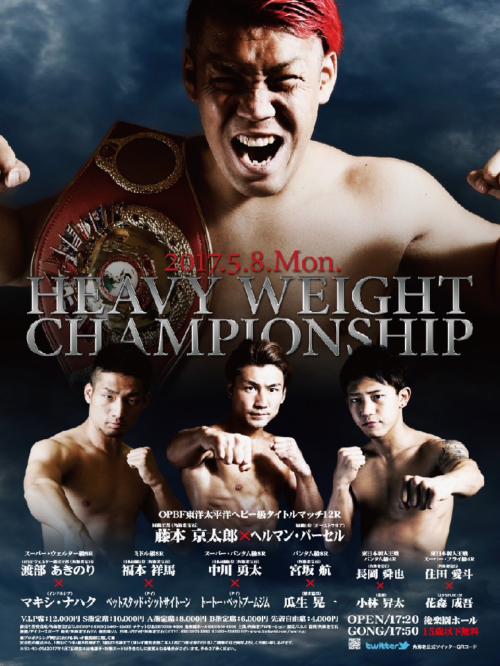 注目:パーセルは戦績16戦11勝(5KO)5敗、サモア出身の22歳。5連勝中と勢いがあり、前戦では藤本が12年5月に2回TKOで仕留めたアファ・タトゥプ(NZ)と戦い、TKO勝ちしている。映像を見る限りスピード、テクニックとも藤本が上回るが、巨体を生かしたパンチは重くパワフル。ラグビーが盛んな地の出身とあって体も強く、並大抵のパンチでは倒れそうにない。藤本が前回のOPBF王座決定戦でスピードと手数で攻略したウィリー・ナッシオ(ニュージーランド)に似たタイプと言えそうだが、気の強さと圧力はパーセルの方が上。荒々しいファイトを藤本がどう攻略するのか楽しみだ。