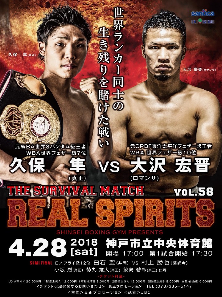 注目:ノンタイトル戦で行われるサバイバルマッチほどコアファンの心を掴む試合はない。2016年にラスベガスで世界挑戦した大沢宏晋だが、振り返ってみると、改めてあの舞台の大きさに驚かされる。パッキャオ(比)、ドネア(比)、ゾウ・シミン(中国)との競演だったのだ。負けた後、モチベーションを上げ直すところから始まった再挑戦への道。この対戦がハイリスクなのは、お互いに承知していることだが、この試合が組まれたということは、世界に向けて正しい方向に向かっていることの証でもある。一方、昨年は天国と地獄を味わった久保隼は、この試合が再起戦。しかも、フェザー級での門出となる。ただ、階級を上げて世界ランク入りを果たしている以上、言い訳はできない。試合はゴールデンウィーク前半の土曜日! ボクシングファンも見に行けないなんて、言い訳はできない! 関西が誇る世界水準のフェザー級ノンタイトル10回戦。よっぽどの覚悟を決めてリングに上がる二人の激突は、会場生観戦をお勧めする。