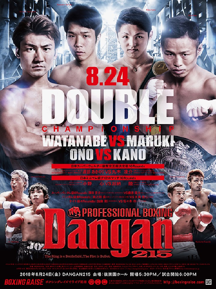 注目:5月の王座決定戦で新チャンピオンに就いた新藤寛之(宮田)が右手を骨折。完治に時間を要するため設置された暫定王座決定戦。同級1位の渡部は、かつて日本とOPBFウェルター級の2冠王者。今回の試合で2階級制覇を狙う。一方の丸木は前戦、新藤とベルトを争い後半追い上げたが、序盤のダウンポイントが響き、僅差の判定で涙を飲んだ。丸木は2戦続けてのタイトル挑戦となる。好戦的なサスウポー渡部に対し、丸木は打ち合いに応じるのか?それとも距離を取るのか?両者ともタイトル戦で悔しい思いをしてきただけに、この試合にかける思いは強い。どちらが勝って新藤との対戦にコマを進めるのか?