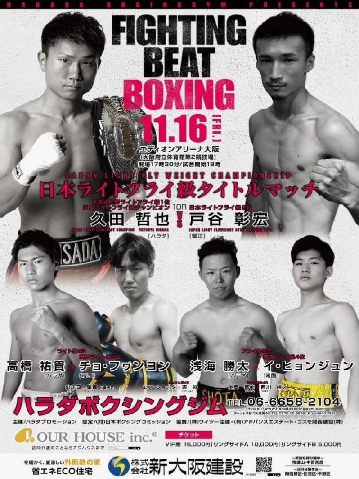 注目:久田は5度目の防衛戦。世界主要4団体で上位につける久田にとって、モチベーションを保つのは難しい時期に来ている。2年前の新人王である戸谷はアウェーの地でチャンスを活かし中部にタイトルを持ち帰ることができるのか?好試合が期待できる。