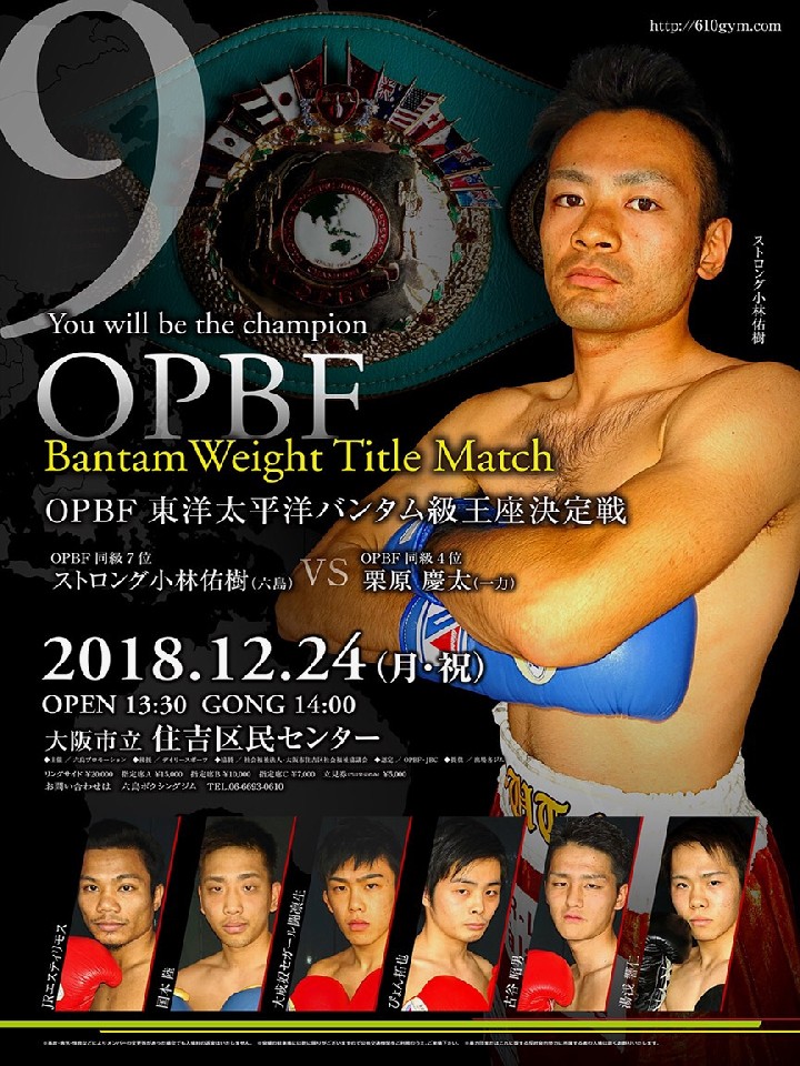 注目:マーク・ジョン・ヤップ(六島)が返上した東洋太平洋タイトルを同門のストロングと、同級4位の栗原が争うことになった。2度のタイトル挑戦経験を持つストロングは4連勝中。対して、栗原は8月にアウェイの大阪で KO勝利し勢いに乗っている。強打を売りにする両者の戦いは KO決着が予想される。