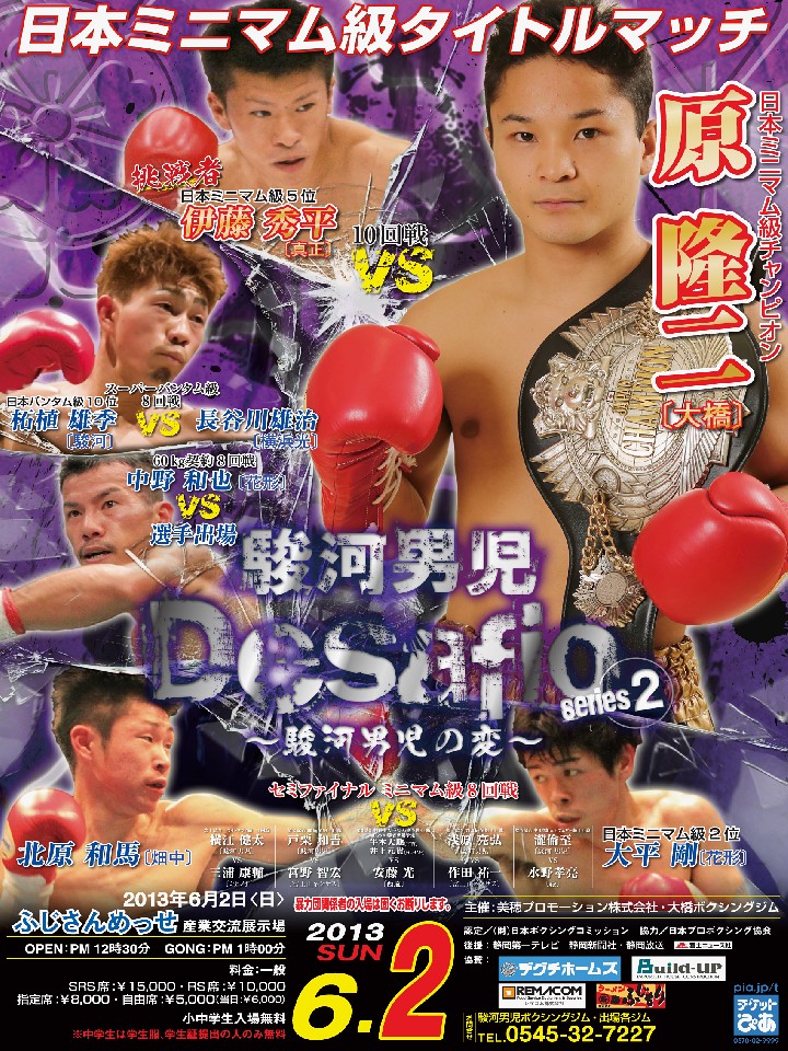 注目:王者・原のV2戦。アマの洗練された技術と、ミニマム級を超越したパワーを誇る原が、故郷・静岡に凱旋する。一方、挑戦者・伊藤は昨年の最強後楽園決勝で敗退するも、復帰戦でタイトル挑戦のビッグチャンスを引き寄せた。富士を見上げるリング、日本最高峰の座に君臨するのは…。