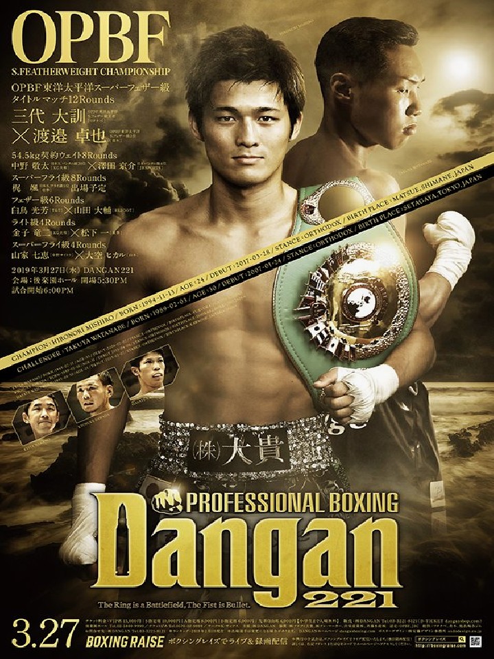 注目:昨年10月に日本王者の末吉大(帝拳)と統一戦を行い、フルラウンドを戦い抜くも判定1-1でドロー防衛に終わった三代のV2戦。飛躍の年となった2018年以上の実績を積み、世界への足場を固めるためにも、2019年の初戦は勝利はもちろん内容が求められる。対し、元WBOアジア・パシフィック同級王者の渡邉はここ数年、香港、中国本土で戦績を重ね、昨年9月には台湾でOPBFシルバー王座を獲得。2年ぶりとなる日本のリングで成長した姿を見せたい。フットワーク、駆け引きを含めた技術力に定評のある二人だけに、見応えのある戦いが期待できそうだ。