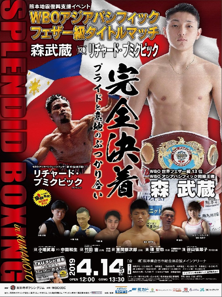 注目:昨年11月に5回負傷判定勝ちでプミクピックから王座を奪ったサウスポー森が、地元熊本で初防衛戦に臨む。前回は消化不良の結果に終わったが、ダイレクトリマッチとなる今回、森は明確な決着をつけ地元に王者としての力を示したい。