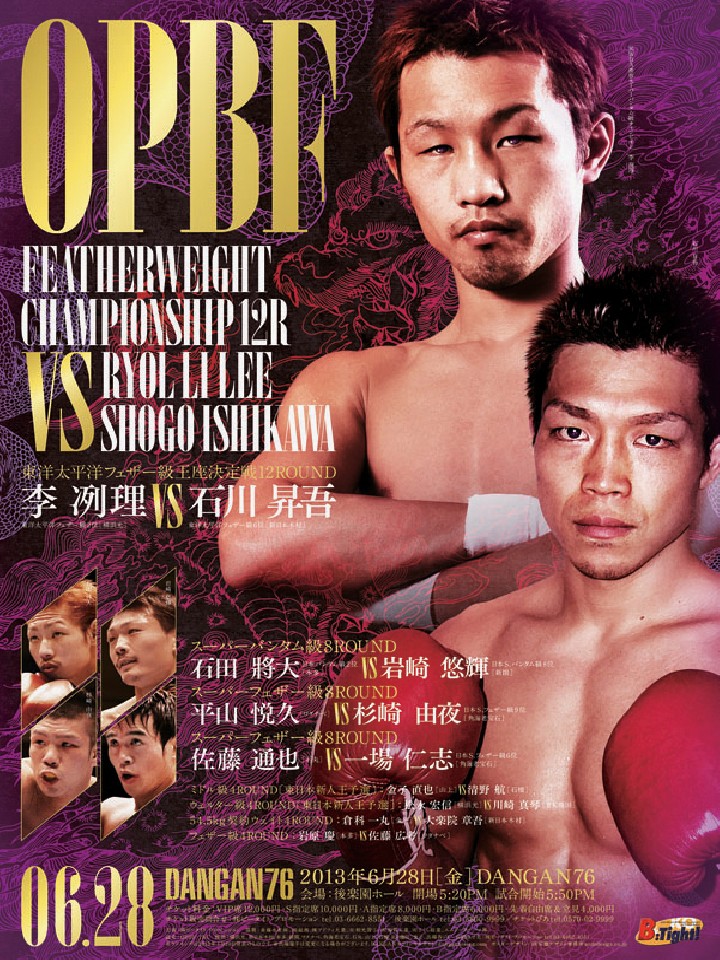 注目:前回の東洋太平洋王座決定戦でまさかのドロー判定となった李。元世界王者のプライドと選手生命に懸けても2戦続けての決定戦は落とせない。対する石川は、李と引き分けたシリロ・エスピノ(比)に判定で勝利し、精神的優位を持って初のタイトル戦に臨む。大物喰いの石川と元世界王者の李、空位の王座に就くのはどっちだ。