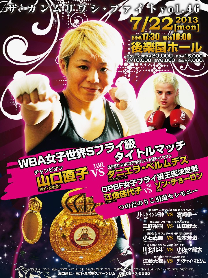 注目:※暫定王者ダニエラ・ベルムデス(亜)は来日不可となり対戦相手が変更(7/16)。さらに17日、今度はWBAの承認が降りず、防衛戦がノンタイトル戦に変更された。