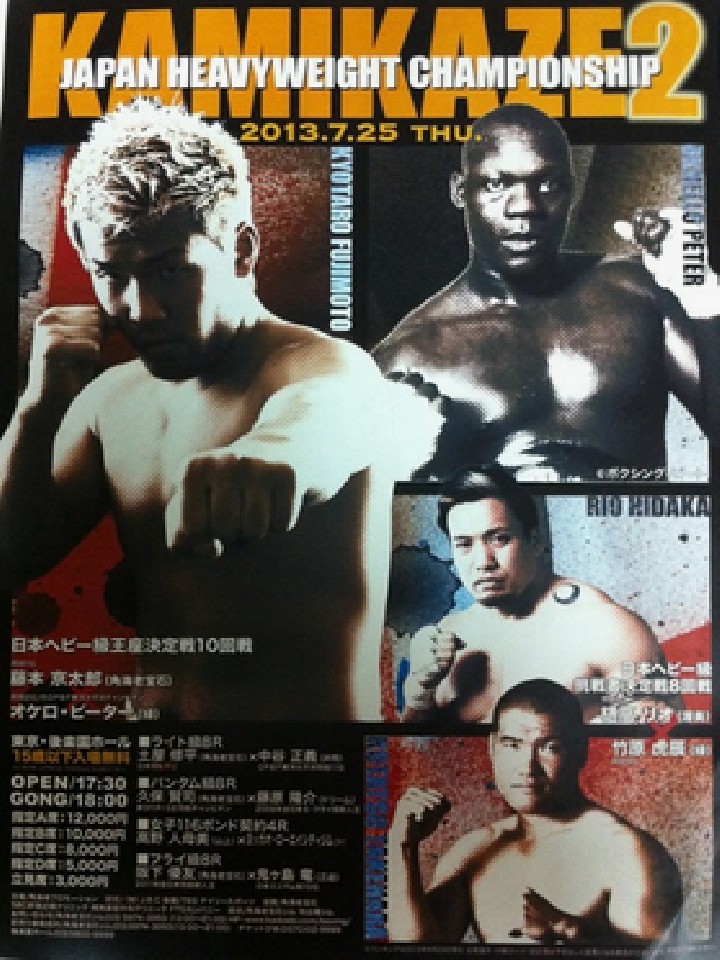 注目:日本人初の世界ヘビー級王座奪取を目指す27歳の藤本は、得意の機動力を活かし日本戴冠を狙う。一方、ベルトを争うピーターはキャリアで藤本の約4倍の27戦を誇り、WBC世界ヘビー級タイトル挑戦経験を持つ41歳のベテラン。56年ぶりに復活する日本ヘビー級タイトルを腰に巻くのは。