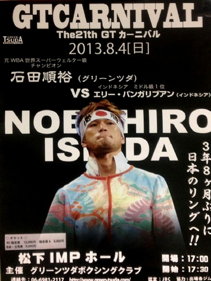 注目:元WBA世界スーパーウェルター級暫定王者、石田順裕(グリーンツダ)が日本で再起する。石田が国内のリングに上がるのは3年7ヵ月ぶり。8月18日で38歳になり、戦績は35戦24勝(9KO)9敗2分。今後の目標はまだ定まっていないが、今は「日本のファンに僕が戦う姿を見てほしい」と語る。