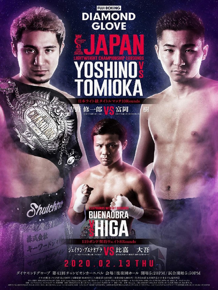 注目:日本&OPBF&WBOアジア3冠王者の吉野が日本タイトル5度目の防衛戦を迎える。デビューから11連勝をマークしここまで圧倒的な強さを見せて吉野はここを勝って海外進出を目指す。挑戦者の富岡は最強挑戦者決定戦を勝ち上がりアタック。軽快なフットワークからスピードのある攻撃が持ち味の富岡は重厚なプレスをかけてくる吉野にどのように対応するのか?